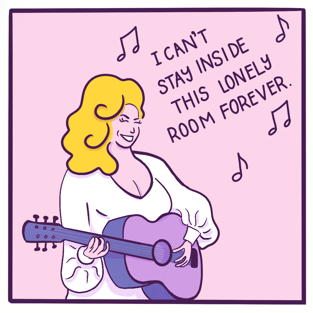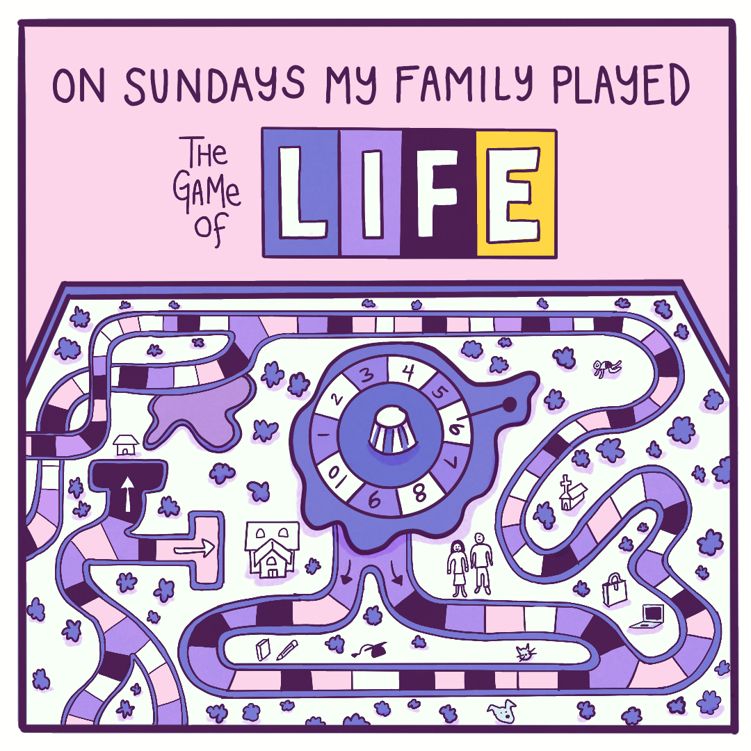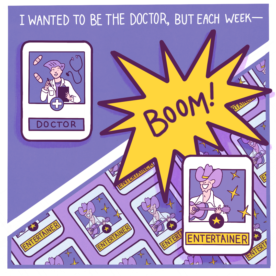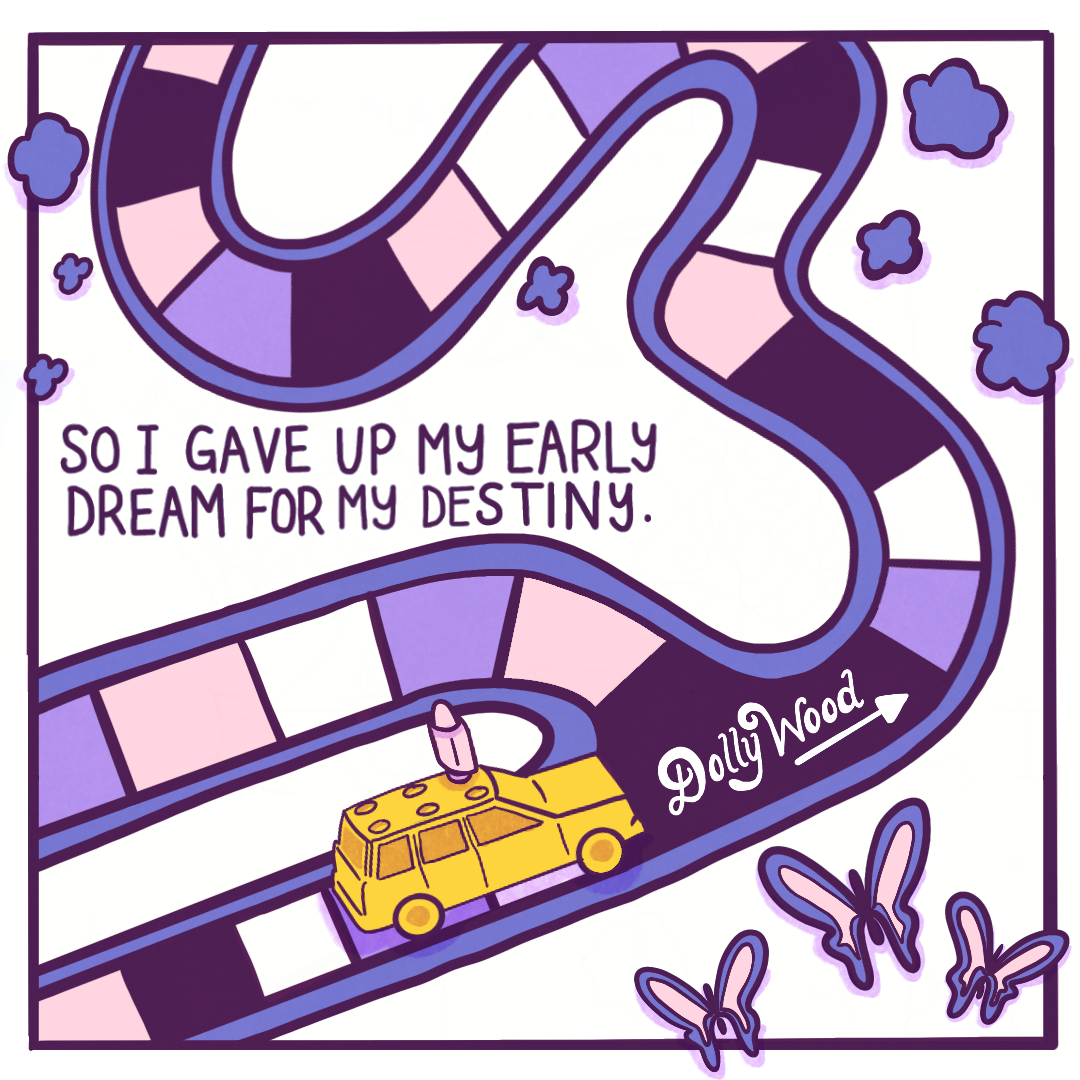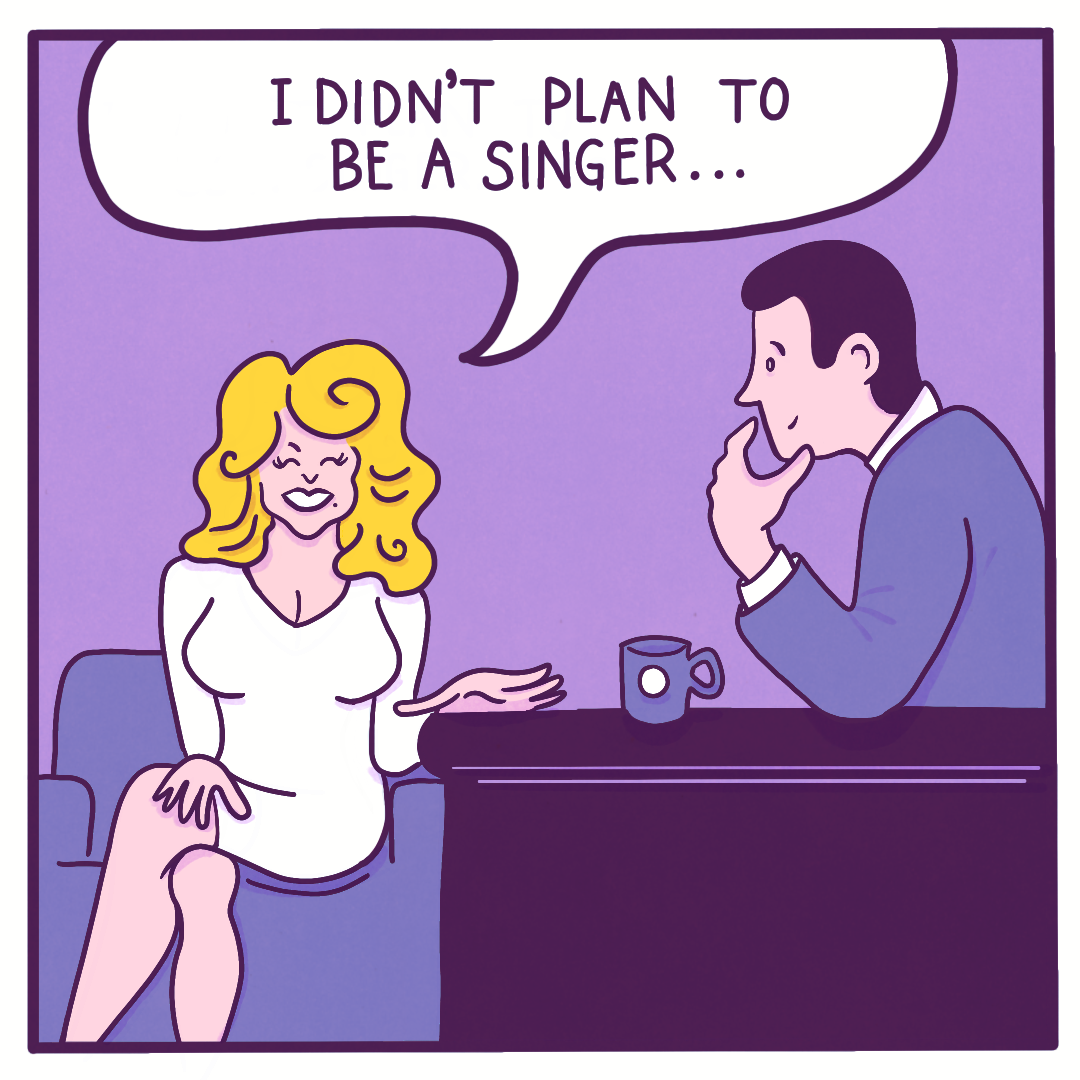 Created for Art Director Kathy Lee’s mock brief for The New York Times’ Games section, this comic imagines Dolly Parton on a late-night talk show. Kathy asked us to make a comic inspired by the Connections game, turning a word bank into a story. My words were dolly, life, dream, and boom.